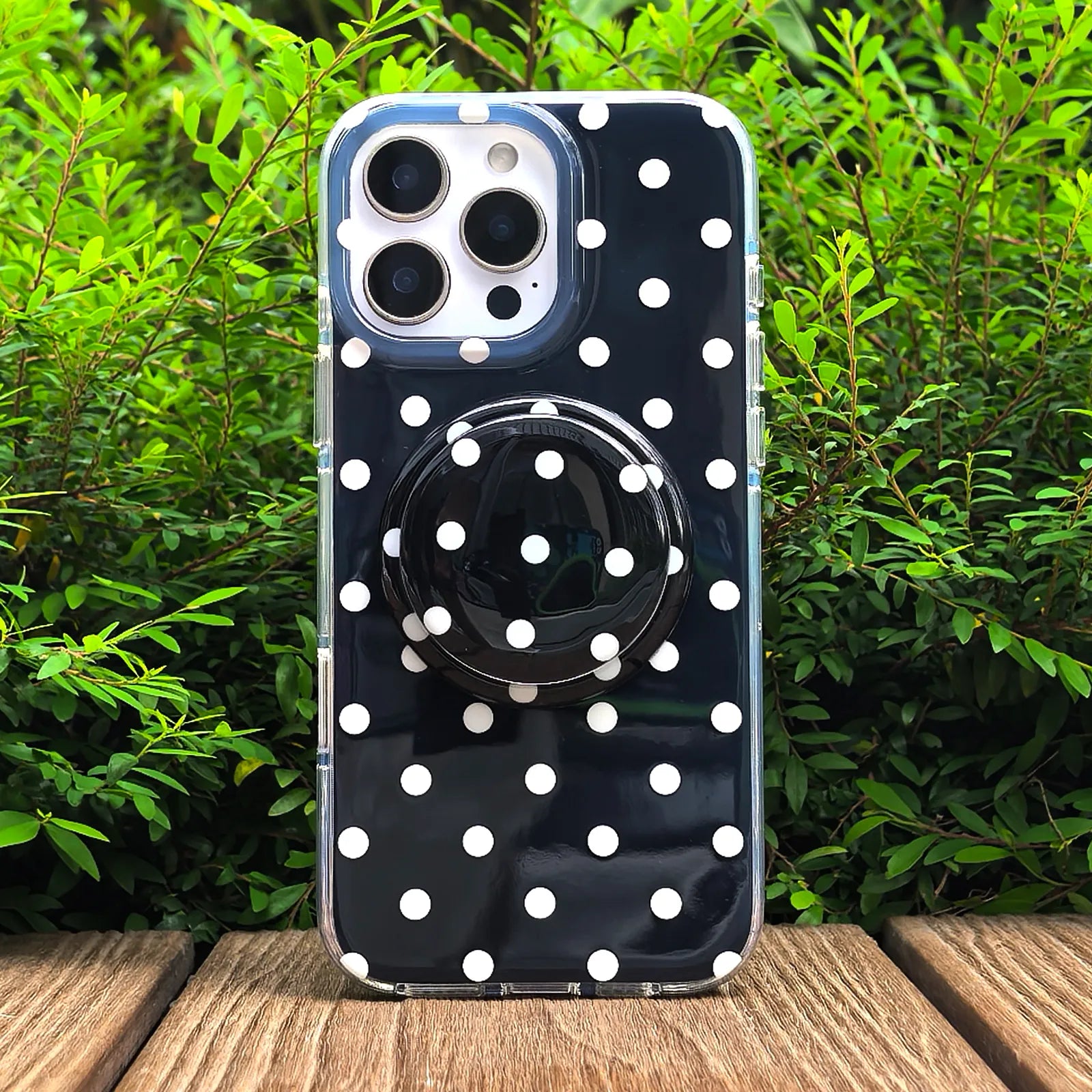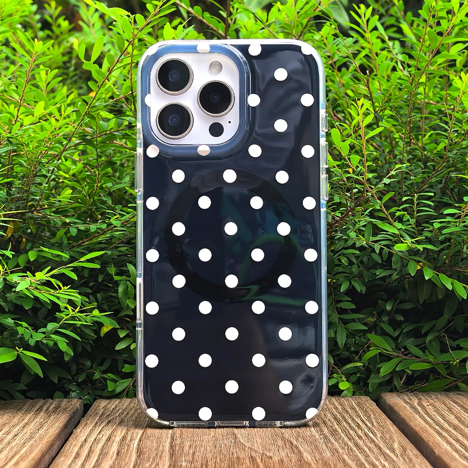 Black Polka Dots Phone Case MagSafe Grip Set
